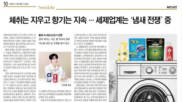 세제시장의 경쟁 구도가 바뀌고 있다. 과거에는 ‘얼마나 깨끗하게 빨래하느냐’가 핵심이었다면, 이제는 ‘얼마나 빨리 각종 체취를 없애고 좋은 향기를 오래 남기느냐’가 승부처가 된 모양새다.