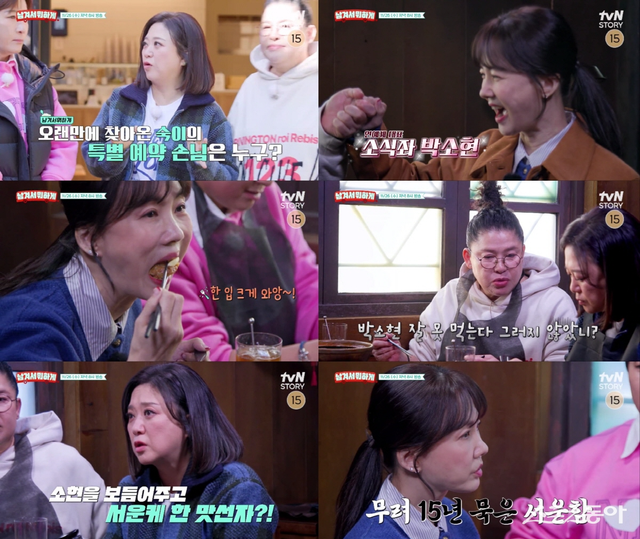 26일 오후 8시에 방송되는 tvN STORY 영자와 세리의 ‘남겨서 뭐하게’에서는 다시 찾아온 스페셜 MC 김숙과 예약 손님 ‘소식좌’ 박소현이 ‘맛선 프로젝트’를 찾아, 푸짐한 대접 한상과 함께 ‘맛선자’와의 15년 묵은 서운함 폭로전을 펼칠 예정이다.