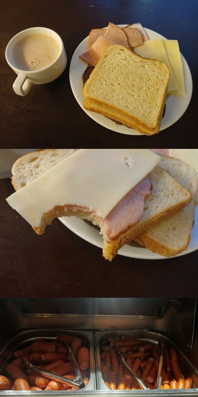 큼지막한 토스트기에 빵을 구워서 고기랑 뇸뇸!!