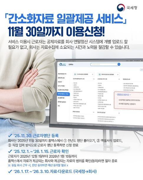 [와이뉴스] 「간소화자료 일괄제공 서비스」 11월 30일까지 이용신청!