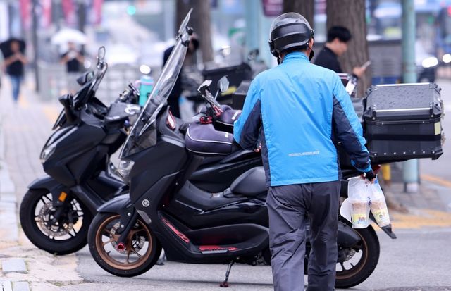 서울의 한 식당가에서 배달 노동자가 분주하게 움적이고 있다. / 뉴스1