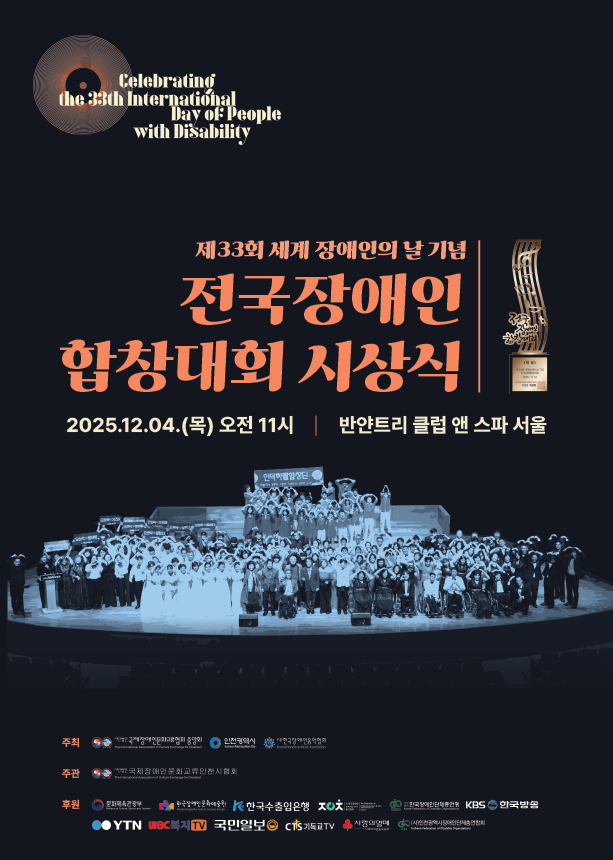 ‘제33회 세계장애인의날 기념 전국장애인합창대회’ 시상식이 12월 4일 오전 11시, 서울 반얀트리 클럽앤스파에서 열린다.