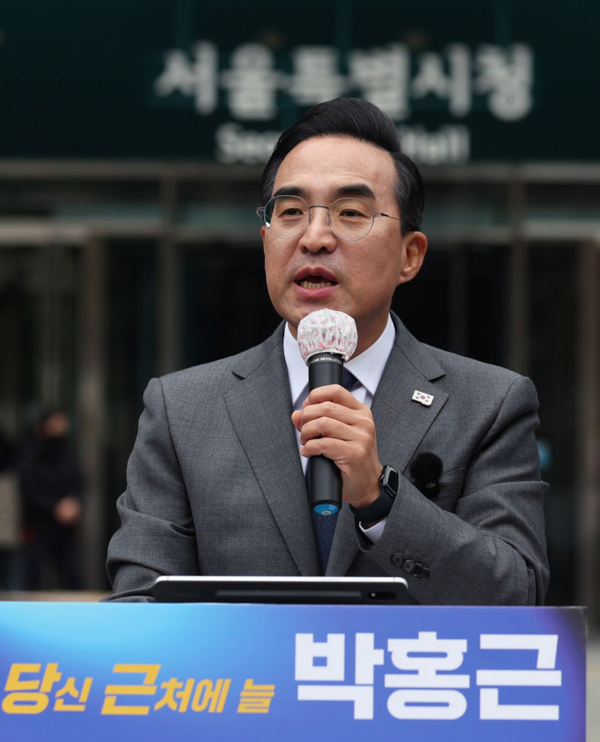 박홍근 더불어민주당 의원은 26일 오후 서울 중구 서울시청 앞에서 출마 선언 기자회견을 열고 "오세훈식 '시민 없는 시정'을 혁파하고 서울을 질적으로 고도화해 사람의 서울, 연결의 서울, 첨단의 서울을 만들어낼, 유능하면서 강단 있는 새 리더십이 매우 절실하다. 이제 제가 그 역할을 맡고자 한다"고 밝혔다.