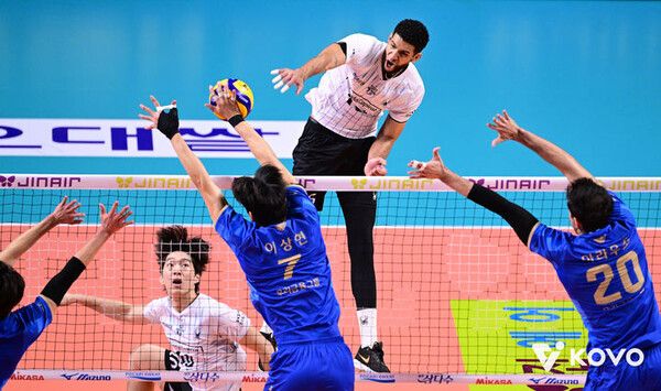 지난 경기에서 트리플크라운을 달성한 에이스 아라우조는 이날도 20점을 올렸다. 김지한은 올 시즌 개인 최다인 16점을 기록했다.