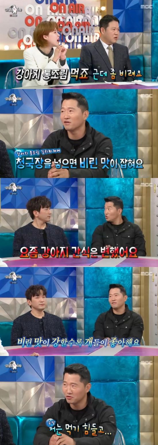 강형욱은 "그 때 강아지 간식을 많이 먹었다. 옛날에는 강아지 간식이 사람 간식과 비슷했다. 그래서 맛있었다. 요즘에는 강아지 입맛에 맞추다보니 훨씬 비려졌다. 비릿 맛이 강할 수록 강아지들이 좋아한다"고 설명했다.
