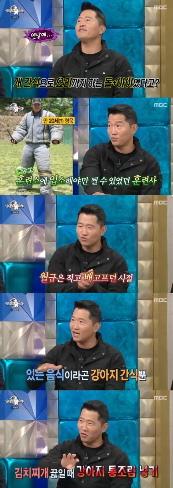 강형욱은 "지금은 훈련사 되는 방법이 다양한데, 예전에는 훈련소에 입소해서 숙식을 해야했다. 그때는 월급은 적고 배는 고프니까 주변에 강아지 통조림을 요리에 사용했다"고 말했다.