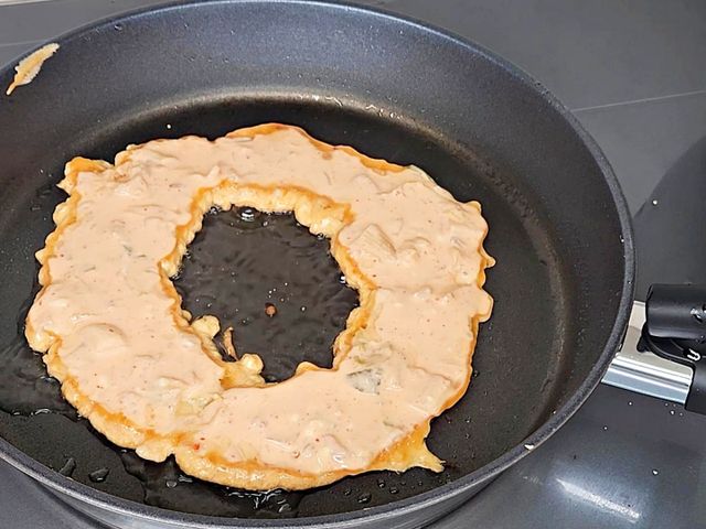 가운데는 비우고 바깥쪽에만 반죽을 둘러주세요.
