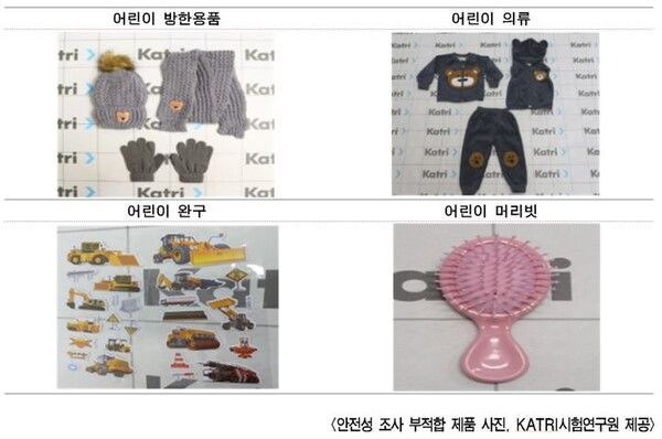어린이 완구와 기타 제품도 유해 물질이 검출되거나 물리적 안전 기준을 충족하지 못했다.