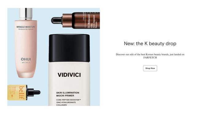 26일부터 국내 주요 10개 K뷰티 브랜드 제품이 파페치를 통해 해외 판매된다. 전 세계적으로 잘 알려진 더후, 오휘 등의 브랜드 제품을 선보이며, 이번 협업에는 중소·중견기업 JM솔루션·Dr.Different·아리얼·듀이트리·VT코스메틱이 함께했다.