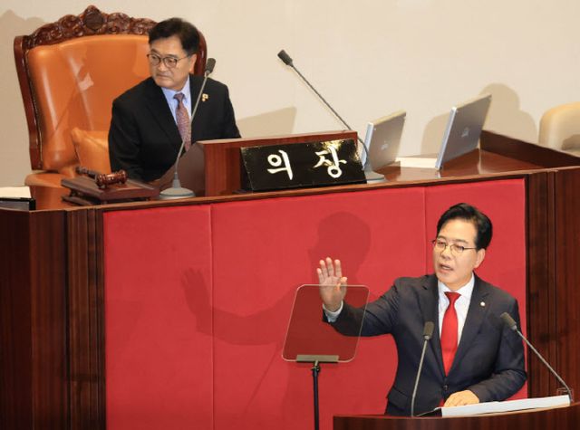 장동혁 국민의힘 대표는 이날 자신의 사회관계망서비스(SNS)에서 “오늘 본회의에서 추경호 전 원내대표에 대한 체포동의안이 상정된다”며 “거대 여당은 이번에도 힘으로 가결을 밀어붙일 것”이라고 지적했다.