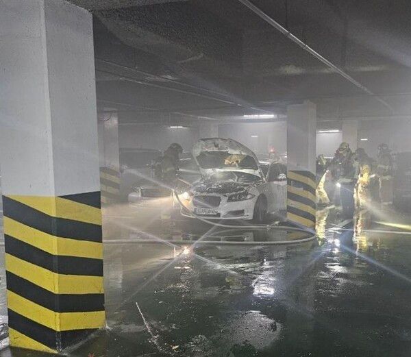불은 "주차장에 연기가 난다"는 주민 신고를 받고 출동한 소방당국에 의해 1시간 20분여 만인 오전 8시13분 완전히 꺼졌다.