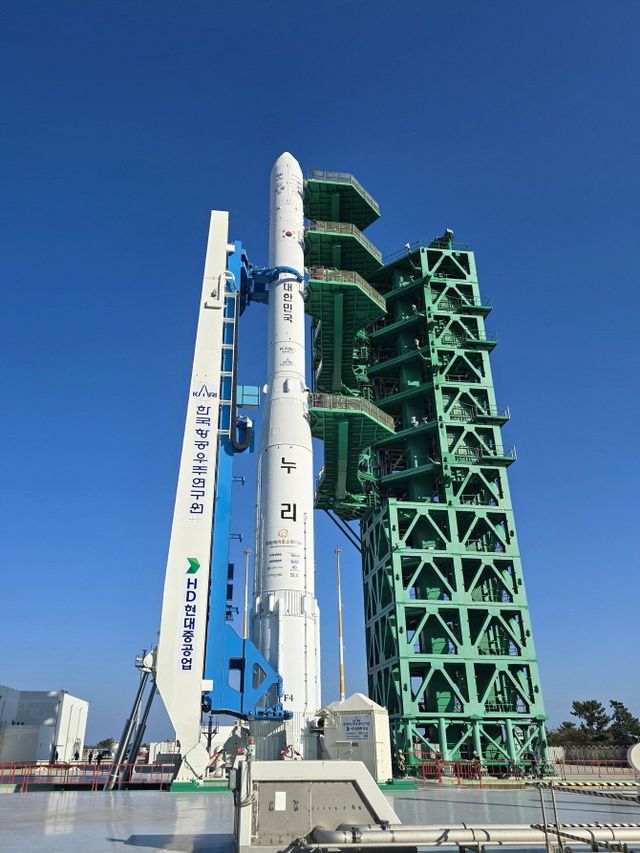 HD현대중공업이 구축한 발사대에서 발사 준비를 마친 누리호. ⓒ HD현대중공업