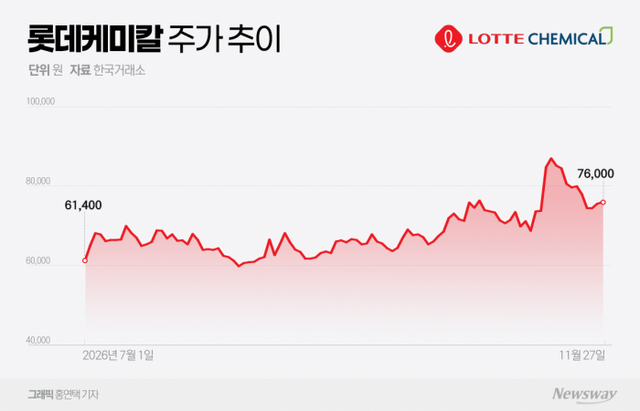 롯데케미칼 주가 7만6100원, 전일 대비 0.79% 상승