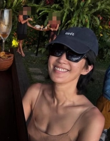 공개된 사진 속 홍진경은 지인과 함께 인도네시아 발리 우붓에서 휴가를 보내고 있는 모습이다. 선글라스와 모자를 착용한 채 와인 한잔과 여유를 만끽하고 있다.