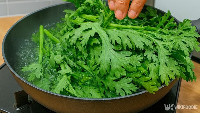 - 쑥갓은 15초 안에서 데치면 향과 아삭함이 유지된다.