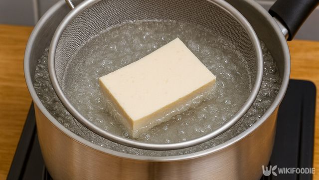 3. 두부를 끓는 물에 1분 데친 뒤 찬물에 식힌다.