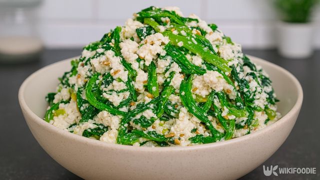 데친 두부는 찬물에 식혀 면포나 거즈에 싸서 가볍게 눌러 잔여 물기를 제거한다. 물기를 제대로 빼지 않으면 완성 후 무침이 쉽게 물러지고 양념이 묽어진다. 두부는 주걱으로 으깨되, 너무 곱게 만들지 않고 알갱이가 약간 남도록 하는 것이 좋다.