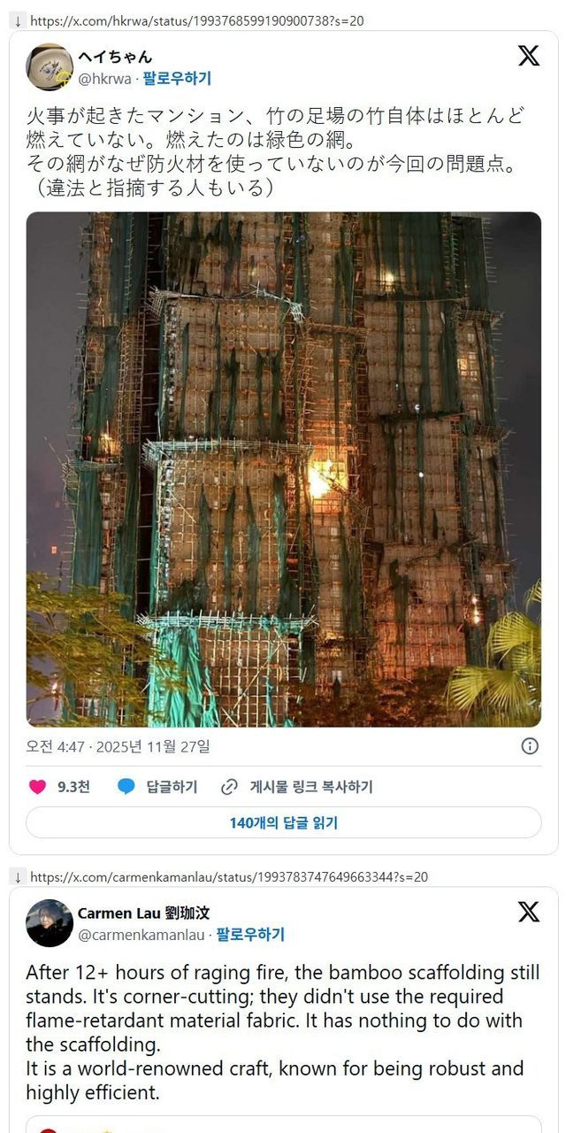 그래서 해외에선 대나무가 아니라 방화재 사용하지않은 겉면을 더 문제점으로 보고있는중