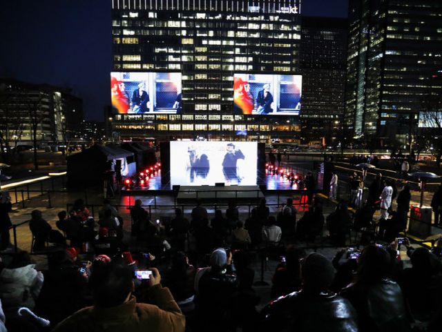 27일 서울 광화문 KT스퀘어와 세종문화회관 뜨락에서 듀스 신곡 공개 기념 특별 청음 행사 ‘더 사운드 스테이지 위드 KT’(THE SOUND STAGE with KT)가 개최됐다.