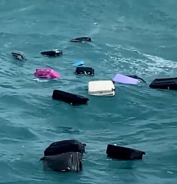 소셜미디어(SNS)에 올라온 영상에는 페리가 거친 파도를 헤치며 항해하는 동안 수많은 여행 가방과 배낭이 바다 위에서 요동치는 모습이 고스란히 담겼다.