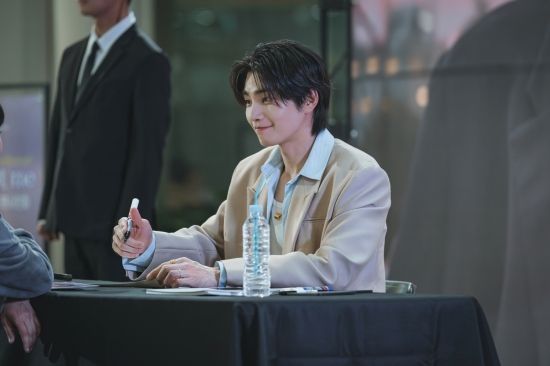 이날 공개된 사진은 한순간에 살해 용의자가 된 아이돌, 도라익의 반전 일상이 담겨있다. 무대에서 누구보다 빛나는 인기 절정의 아이돌 밴드 ‘골드보이즈’, 그 중에서도 압도적 인기를 자랑하는 도라익의 아우라가 눈길을 사로잡는다. 팬들을 향한 달콤한 미소는 프로 아이돌 그 자체. 그러나 ‘아이돌’ 자아를 벗은 무대 밖 도라익의 날 선 모습은 그늘진 내면을 짐작게 한다. 그런 그에게 상상도 못한 사건이 들이닥친다고. 바로 그룹 멤버를 살해한 용의자가 된 것. 취조실에서 포착된 두려움과 분노, 억울함이 뒤섞인 눈물을 보이는 도라익의 모습은 그에게 무슨 사건이 벌어진 것인지 궁금케 한다. 정상급 아이돌이던 그가 어째서 살인사건에 얽히게 되었는지, 맹세나와 함께 무죄를 입증해 낼 수 있을지 귀추가 주목된다.