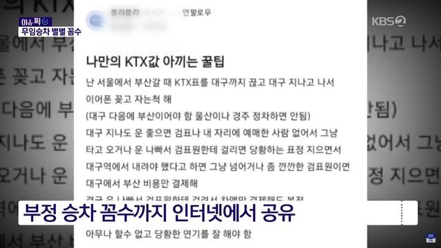 승차권 없이 KTX에 올라 “걸리면 당황한 척하면 된다”는 식의 꼼수가 한때 온라인에서 버젓이 돌았다. 대구까지만 끊고 더 가거나 이어폰 꽂고 자는 척하다가 적발되면 “표를 잘못 받았다” “내일 표인 줄 알았다” 같은 변명으로 넘어가려는 사례가 반복됐다.