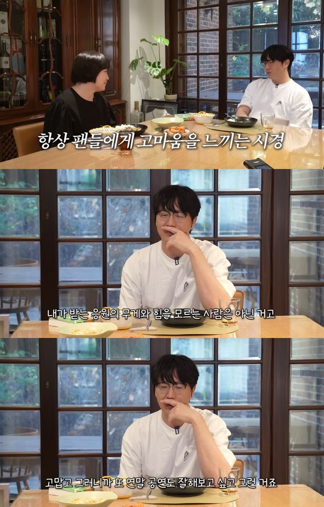 그러면서 그는 "나는 내가 잘난 맛에 살지는 않지만 내가 받고 있는 응원의 무게와 힘을 모르는 사람은 아니다. 고맙고 그러니까 또 연말 공연도 잘 해보고 싶다"며 연말 공연을 향한 의지를 다졌다.