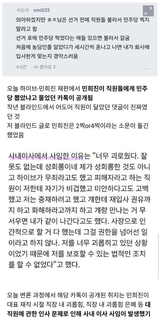 직원한테 특정 정당 찍지 말라하고, 그 정당을 찍었다는걸 알게 되자 3시간씩 혼내는 직장내 괴롭힘이 있었다 (O)