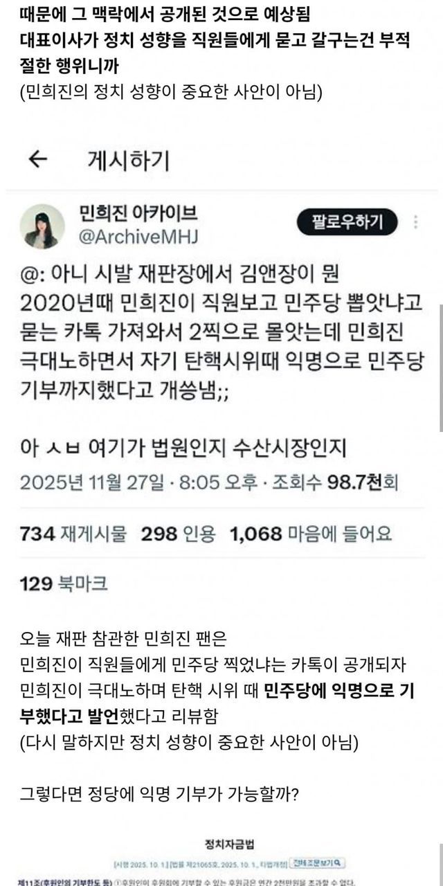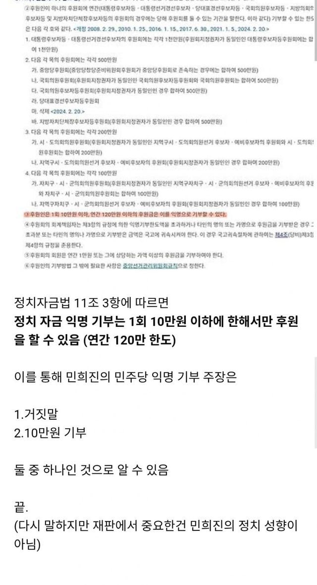 민주당에 익명기부 (10만원) 했으니 괜찮다 (X)