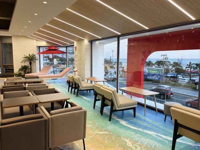 매장은 약 156평(449㎡)의 넓은 규모를 자랑한다. 2층은 전면 통창을 설치해 어느 좌석에서나 탁 트인 바다 풍경을 즐길 수 있다. 좌석은 총 156석으로, 아늑한 커플석부터 가족 단위 단체석까지 다양하게 마련했다.