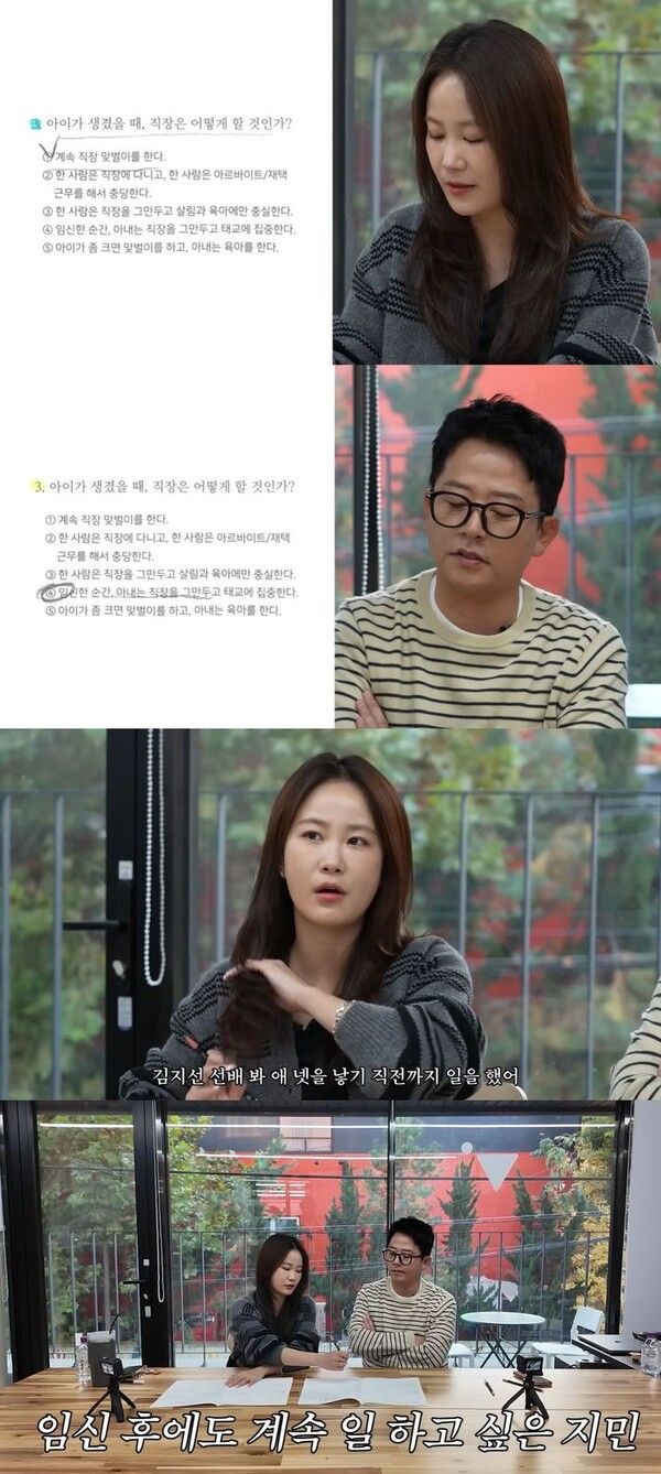 김지민은 "직장을 그만두면 경력 단절 돼서 더 우울해진다"며 "내가 좋아하는 일을 하는 게 태교"라고 덧붙였다.