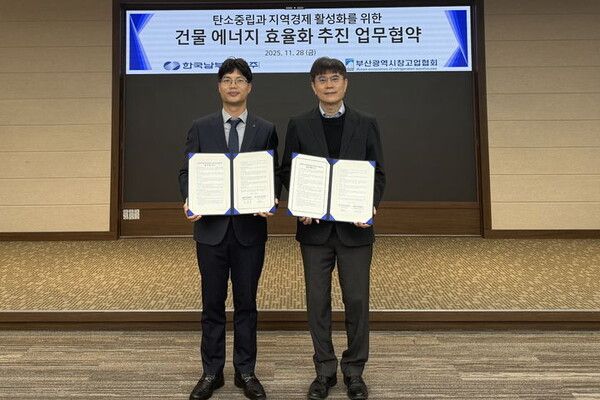 한국남부발전이 부산 본사에서 부산광역시창고업협회와 '탄소중립과 지역경제 활성화를 위한 건물에너지 효율화 추진 업무협약(MOU)'을 체결했다고 28일 밝혔다.
