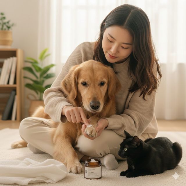 보습제의 흡수력을 높이기 위해서는 해당 부위를깨끗하게 씻기고 물기를 완전히 말려야 한다.특히 발바닥 사이의 털을 짧게 다듬어 주면 크림이 털에 묻지 않고 피부 흡수를 도울 수 있다.