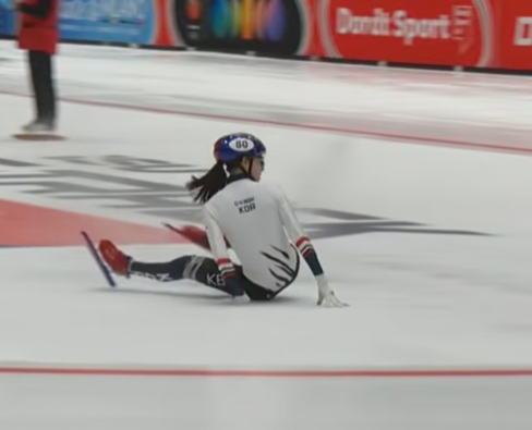 (엑스포츠뉴스 김현기 기자) 국제빙상경기연맹(ISU) 쇼트트랙 월드투어에서 한국과 중국 선수가 결승선 바로 앞에서 충돌, 한국 선수가 빙판에 내동댕이쳐지는 일이 일어났다.