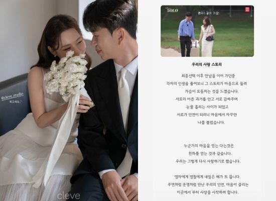 한편 '나는 솔로' 돌싱특집 28기는 총 여섯 커플이 탄생했고, 이중 상철·정숙, 광수·정희, 영철·영자, 영호·옥순 네 커플이 교제 중이다. 모두 결혼에 대해 긍정적인 시그널을 보내고 있는 가운데 상철과 정숙, 영철과 영자가 결혼 소식을 알려 많은 축하를 받았다.