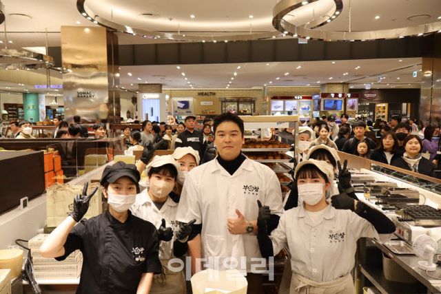 29일 이장우가 부산 신세계 센텀시티점 내 부창제과 4호점에서 고객 이벤트를 진행하기 위해 방문했다. 이날 매장에는 이장우를 보려는 팬들과 그가 모델로 활동하며 화제를 모은 호두과자를 맛보려는 방문객들이 한꺼번에 몰렸다.