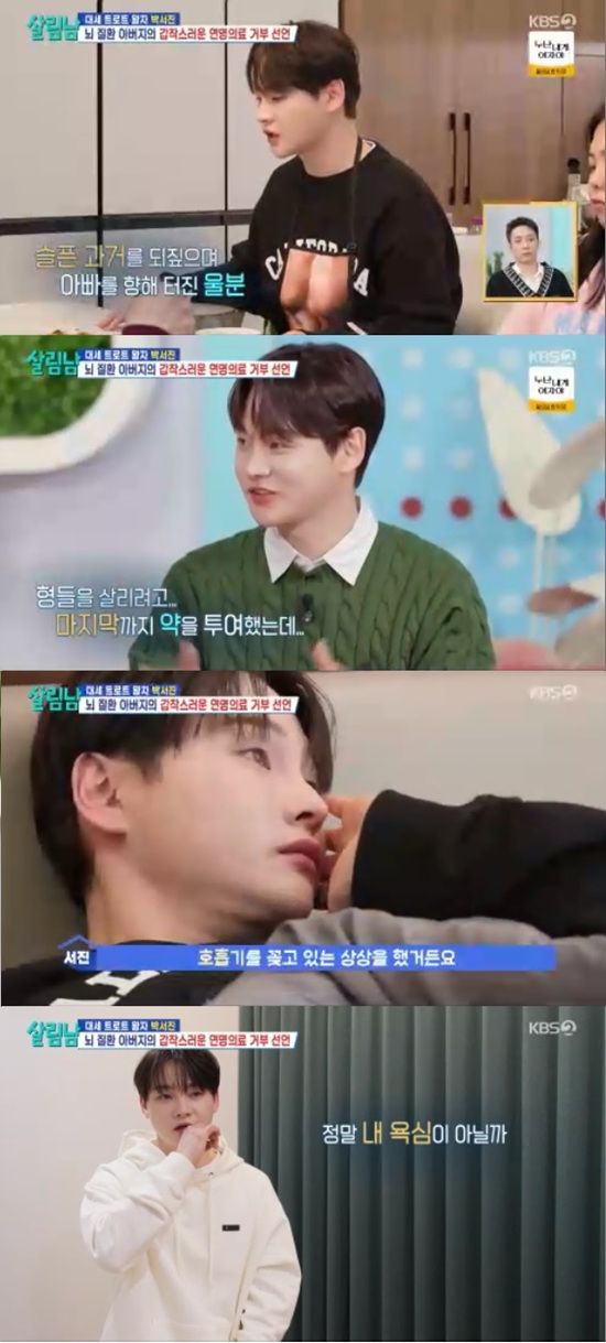 29일 방송된 KBS 2TV '살림하는 남자들 시즌2'에서는 박서진이 아버지의 연명치료 거부 선언에 폭발하는 모습이 전파를 탔다.
