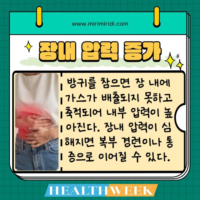 방귀는 우리 몸의 소화 시스템이 정상적으로 작동하고 있다는 자연스러운 생리 현상이다. 이를 심하게, 또는 반복적으로 참을 경우 여러 가지 건강상의 문제가 발생할 수 있다.