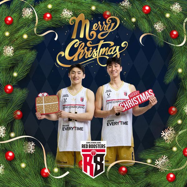 후면에는 정관장 마스코트 '레드부'가 농구공 꾸러미를 든 산타로 표현돼, 귀여우면서도 따뜻한 크리스마스 분위기를 전한다.
