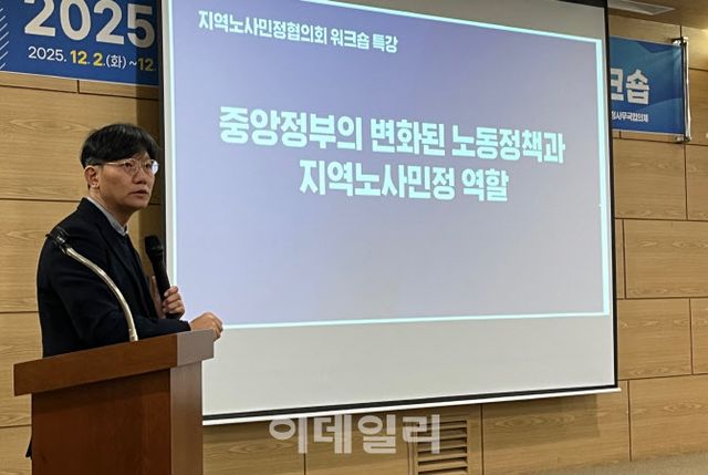 2일 충남 보령시에서 열린 ‘전국 노사민정협의회 공동 워크숍’에서 정흥준 서울과기대 경영학과 교수는 “지역고용활성화법 제정은 이재명 정부의 국정과제 중 하나”라며 노사민정은 이를 참조해야 한다고 강조했다. 이재명 정부 국정기획위원회 전문위원으로 참석한 정 교수는 이날 ‘중앙정부의 변화된 노동정책과 지역노사민정 역할’을 주제로 기조발제했다.