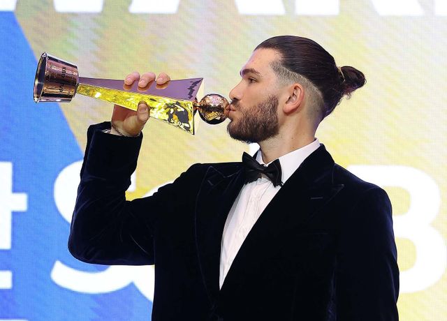 11월 24일 오후 서울 송파구 잠실 롯데월드 호텔에서 열린 프로야구 '2025 신한 SOL 뱅크 KBO리그' 시상식에서 MVP를 수상한 한화 외국인 투수 폰세가 기념 촬영을 하고 있다. / 뉴스1