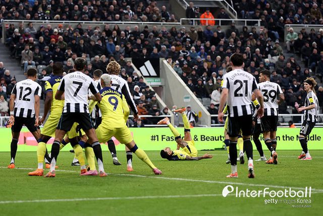 뉴캐슬이 역전했다. 후반 40분 코너킥 상황에서 벤탄쿠르가 번을 무리하게 막다가 페널티킥을 허용했다. 키커로 나선 고든이 깔끔하게 성공했다.