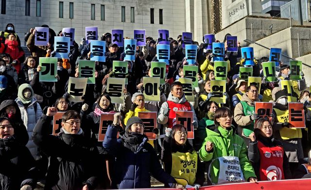 그러면서 "일상의 계엄과 내란은 여전히 견고하게 가난한 민중을 탄압하고 있고, 이에 맞선 우리의 투쟁도 계속되고 있다"며 "더 많은 민주주의와 평등한 세상을 염원했떤 광장의 요구는 나중으로 밀릴 수 없다"고 강조했다.
