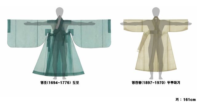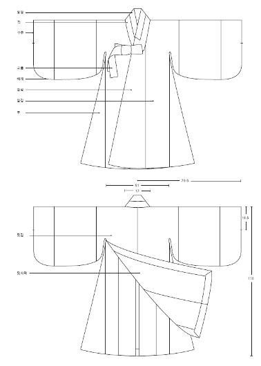선비들의 복장,신하들의 관복(상복)등등 그냥 양반남성이 입는 한복은 거의 전부 저런사이즈여야한다