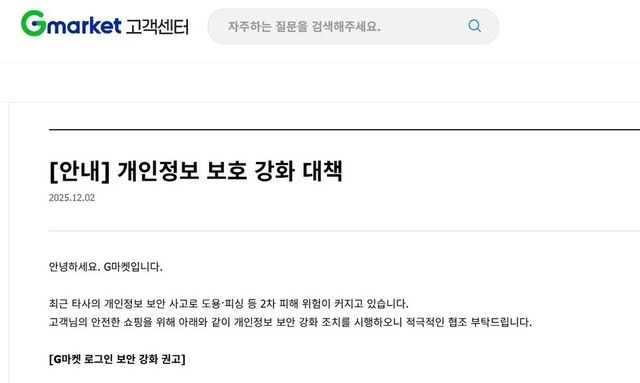 G마켓은 사고 확인 즉시 IP 차단, 2차 인증 강화 등 후속 조치를 시행하고 피해 회원에게 비밀번호 변경과 추가 보안 설정을 안내했다. 다만 플랫폼 자체 시스템 결함이 아니라는 입장을 고수하며 법적 신고 대상이 아니라고 선을 그었다.