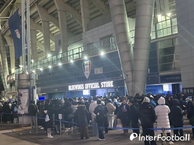 킥오프 1시간 30분을 앞둔 시점, –7℃ 강추위에 바람도 세게 불었는데 빅버드 주변은 수원 팬들로 붐볐다. 응원석 N석 입장 구역 앞에서는 수많은 수원 팬들이 모여 다같이 응원가를 부르고 있었다. 수원 오피셜 스토어 입장을 기다리는 줄은 길게 늘어섰다.