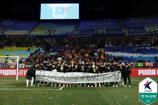 이날 영하의 날씨에 평일 저녁 경기였음에도 수원월드컵경기장에는 1만 8715명의 팬이 찾았다. 특히 수원 삼성은 카드섹션을 비롯해 엄청난 응원 열기를 뿜었다. 김동준은 상대의 응원에 압박감이 없었냐는 물음에 “저를 응원해 주신다고 생각하고 즐겼다”며 “아마 어린 선수들은 압박감이 있어서 조금 힘들었겠지만, 잘 이겨내고 잘해줬다. 2차전에서도 잘해줄 거로 믿는다”고 돌아봤다.