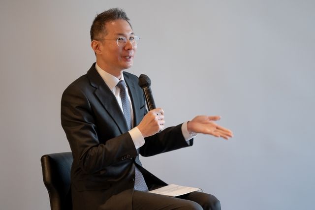 김경훈 오픈AI코리아 총괄 대표가 4일 오전 서울 중구 웨스틴조선호텔에서 열린 기자 간담회에서 질의에 답변하고 있다. 사진=오픈AI코리아 제공