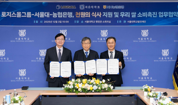 NH농협은행은 지난 3일 대한민국 대표 스마트 물류기업인 로지스올그룹과 함께 서울대학교 학생들의 건강한 일상을 위한 '천원의 아침식사' 지원 업무협약을 체결했다고 4일 밝혔다.