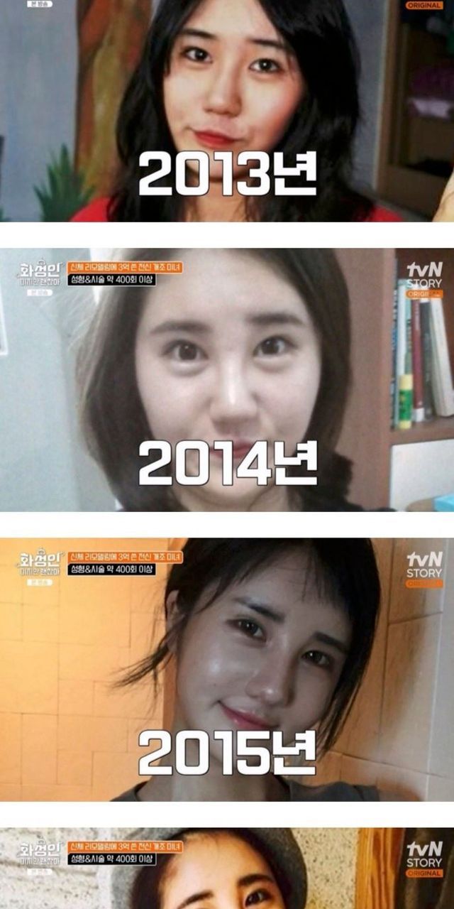 최근에는 중국 가서 메부리코성형하고 리프팅 수술 받았다고 함